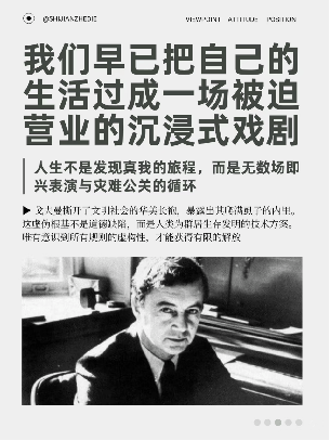 借助戈夫曼的‘拟剧论’,我们提出人生并非被动背台词,而是经营一家情绪摊位。‘前台’是摊位陈列,‘后台’是仓库休整。