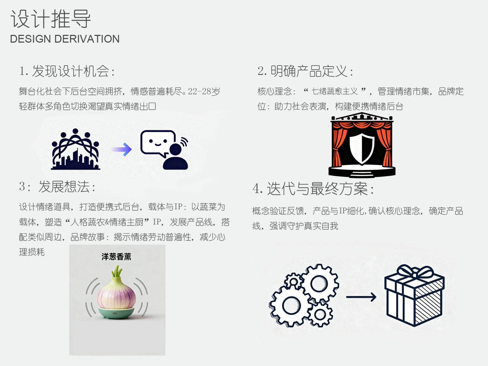以洋葱为原型的智能香氛设备,将深层的哀伤情绪转化为可感知、可释放的香氛仪式。通过剥洋葱的具身交互,引导用户逐层拆解情绪,最终借助香氛的自然蒸发,完成对哀伤的接纳与转化。