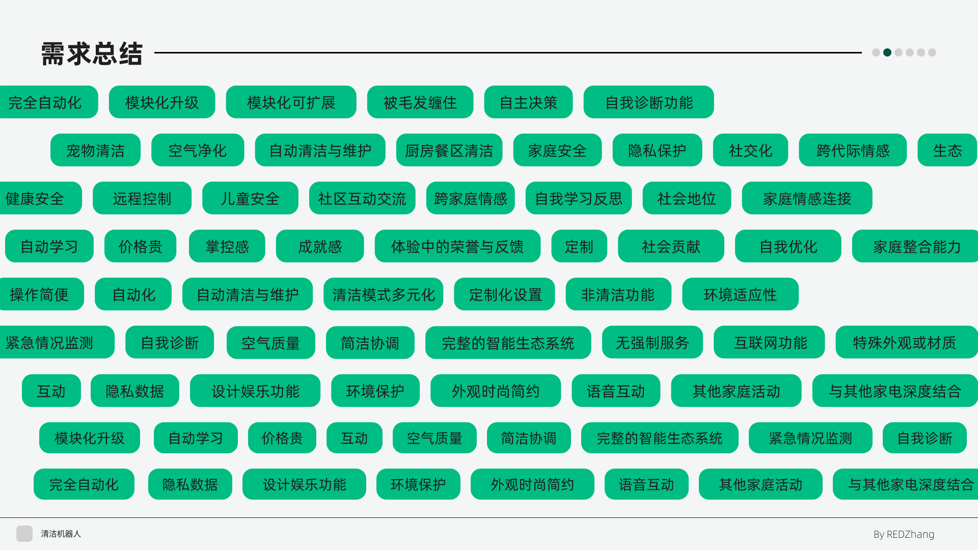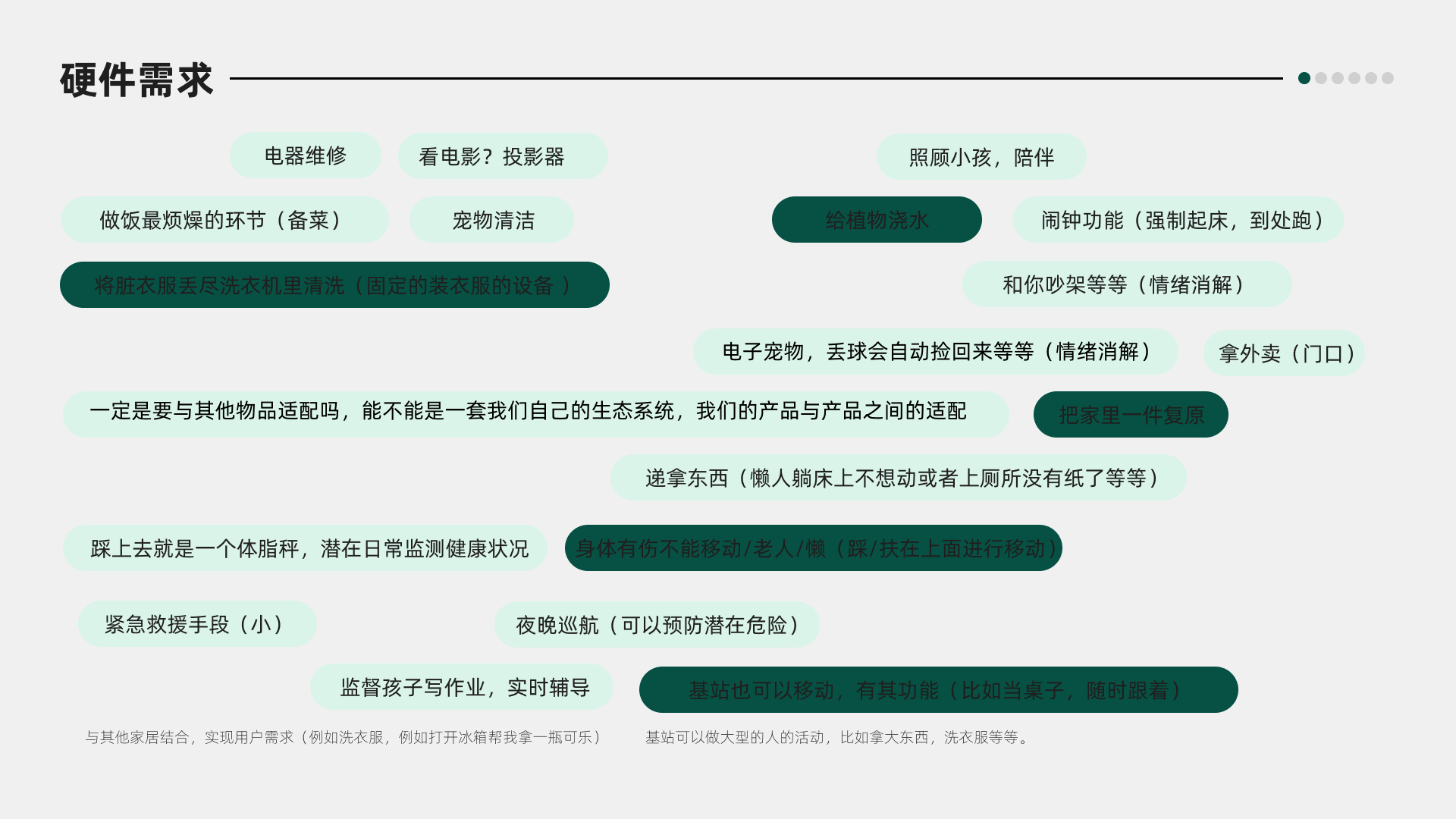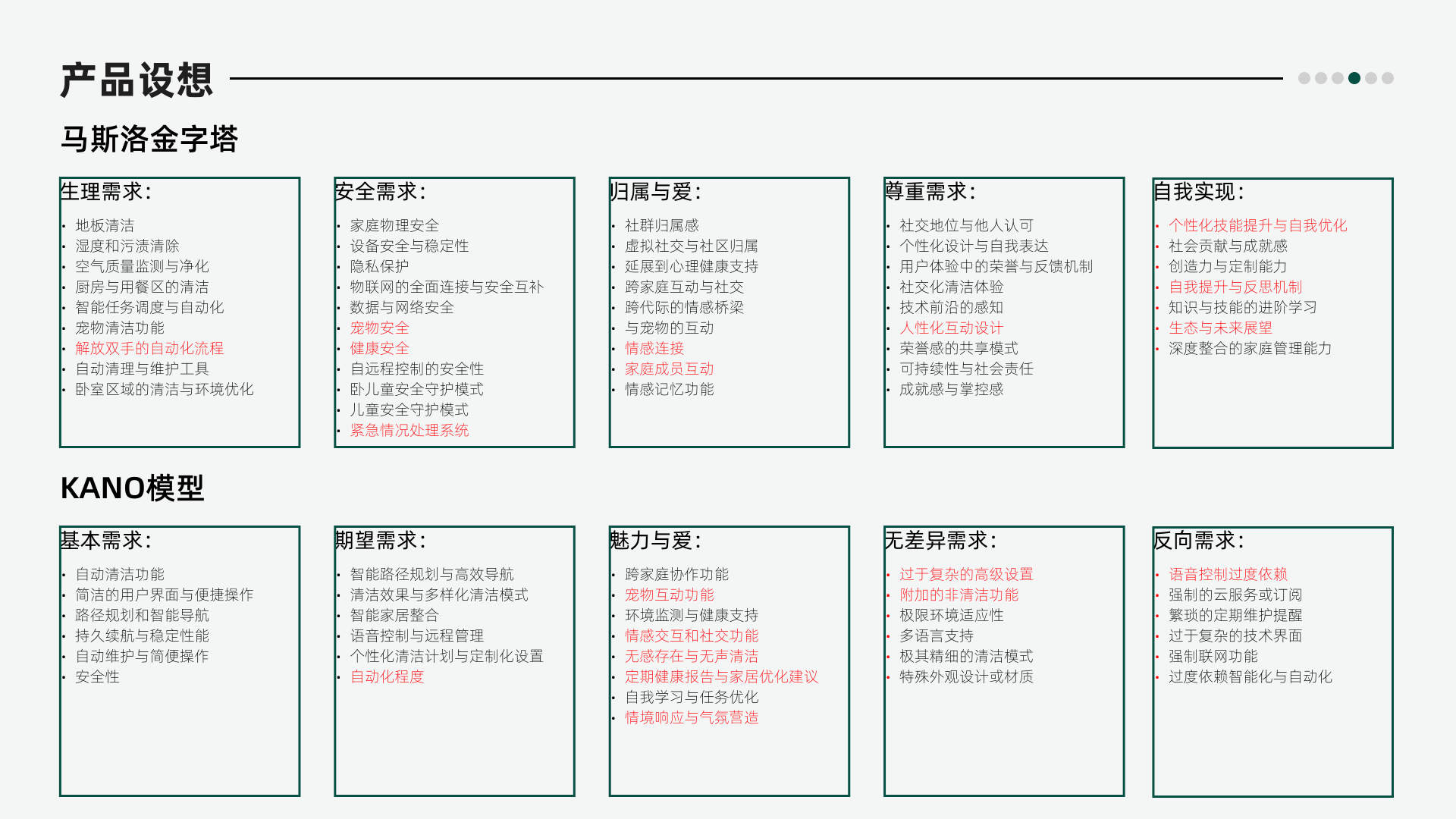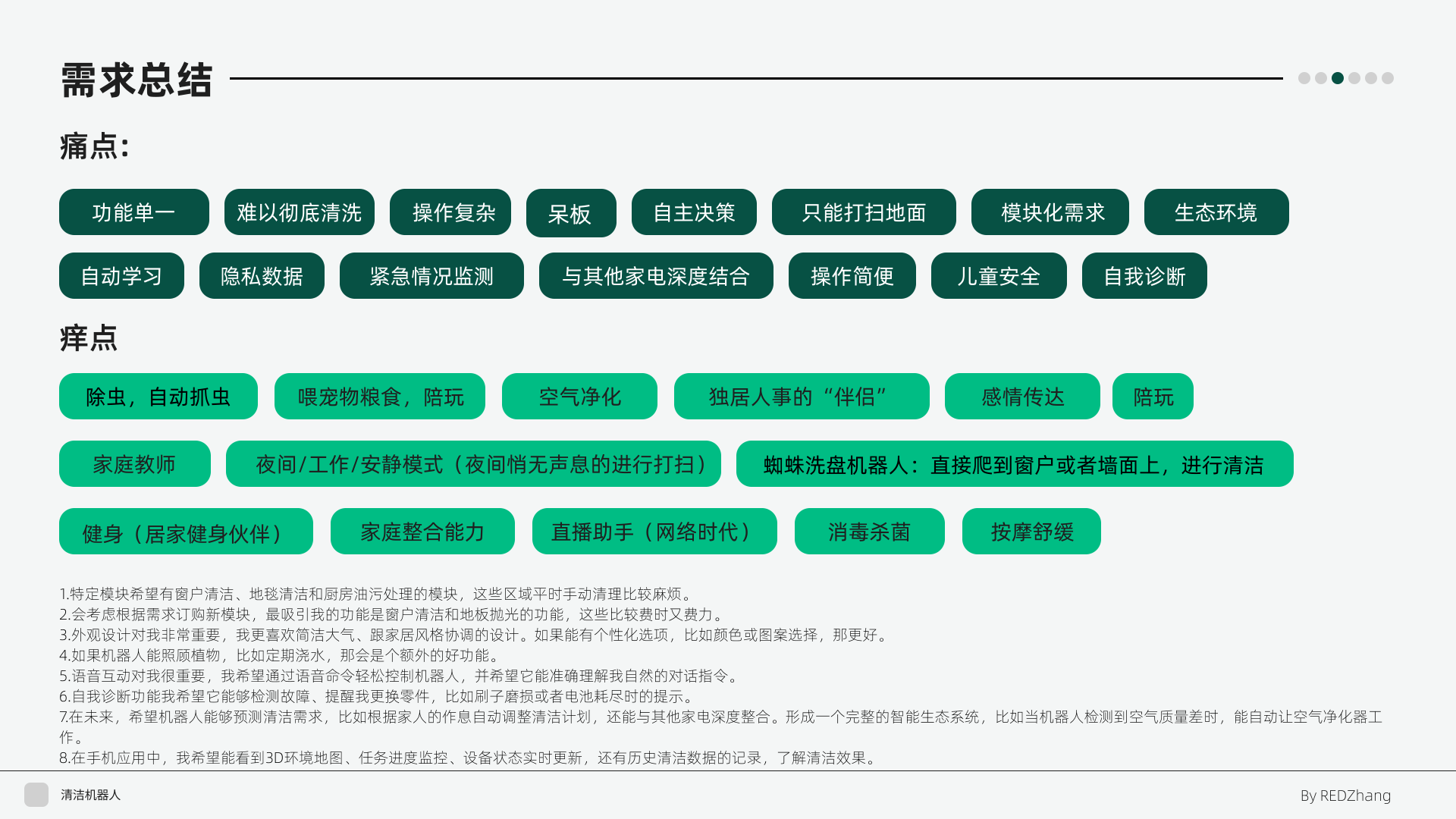 在不断的减法之下,我将方向聚焦于家庭空间中,现有的清洁机器人难以打扫的最后一角。将其整理列出,找出现有的解决方法与所需功能,以及市场上现有的产品与功能模块,结合思考。