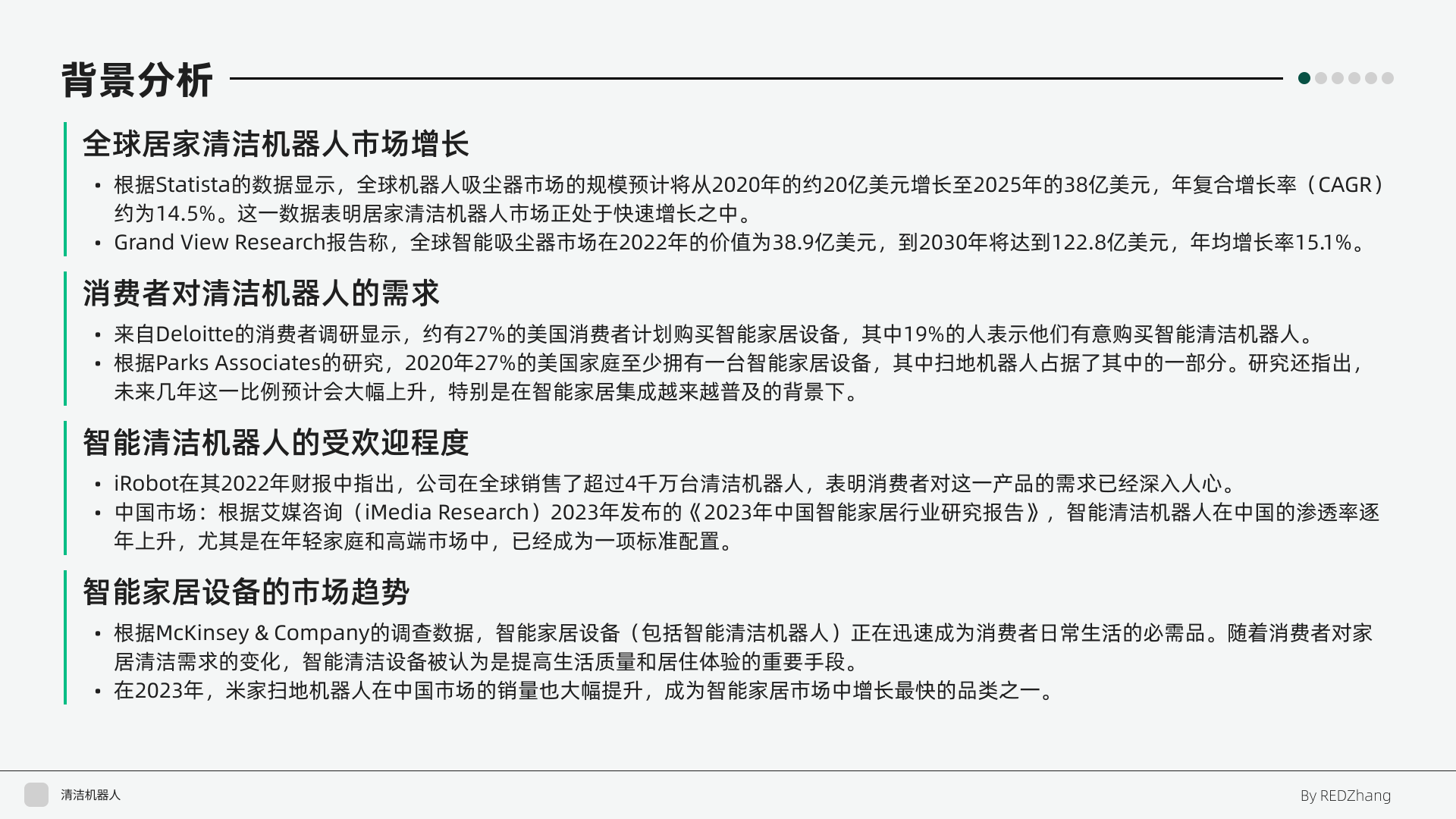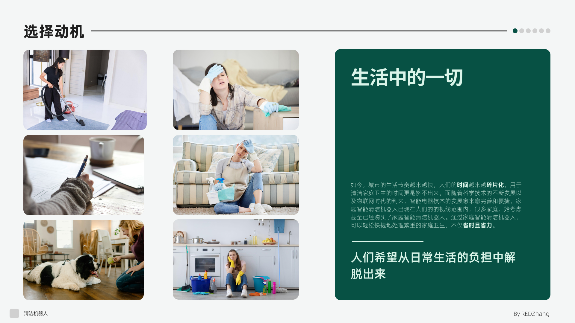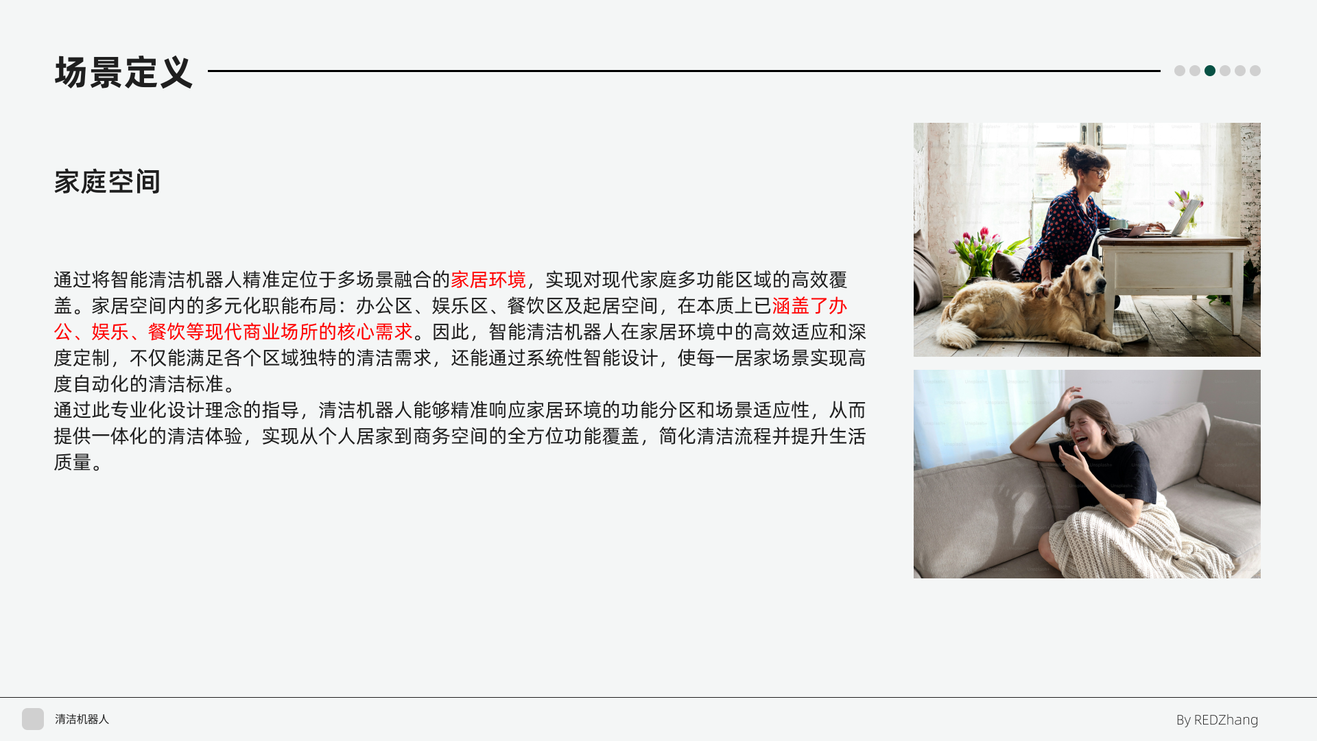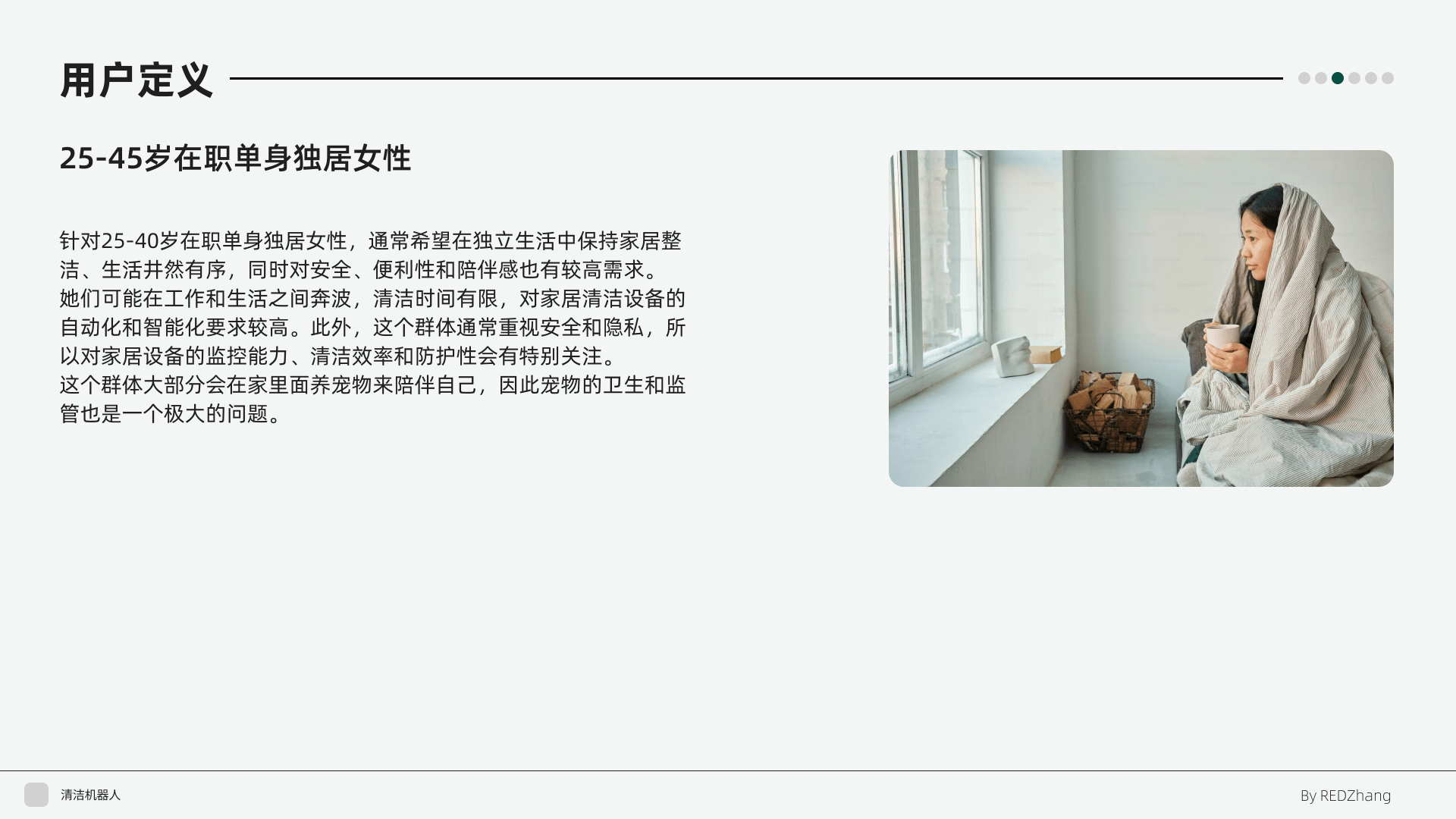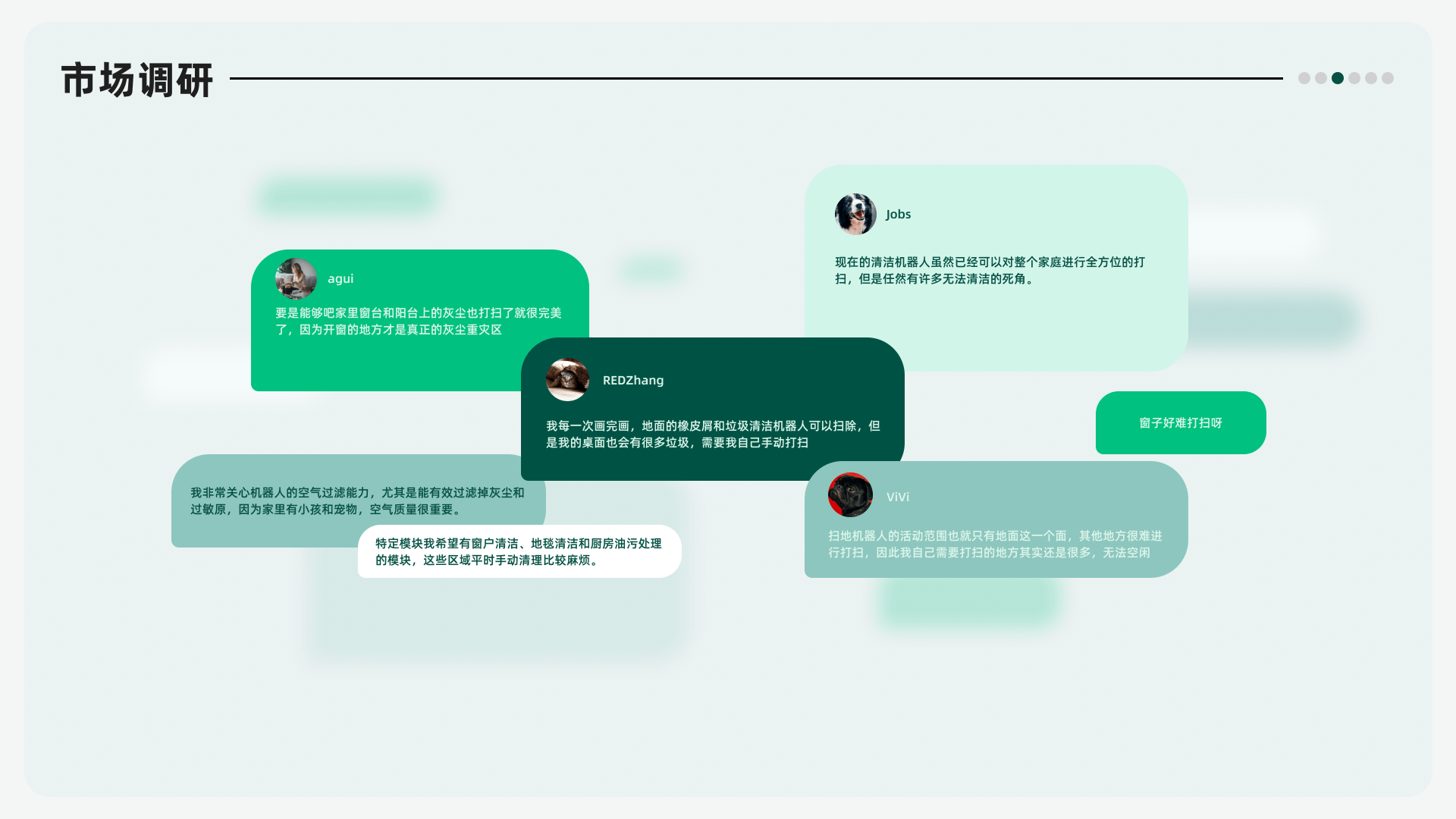 用户定期清洁扫地机器人的刷子、传感器、轮子等维护工作繁琐。如果长时间不维护,设备的清洁效率会恢复,持续一个周期。扫地机器人扫完了地,用户很多时候也没法歇着,要清理尘盒,倒污水,还要洗晒拖布。(解放用户的双手,留出更多的个人空间)