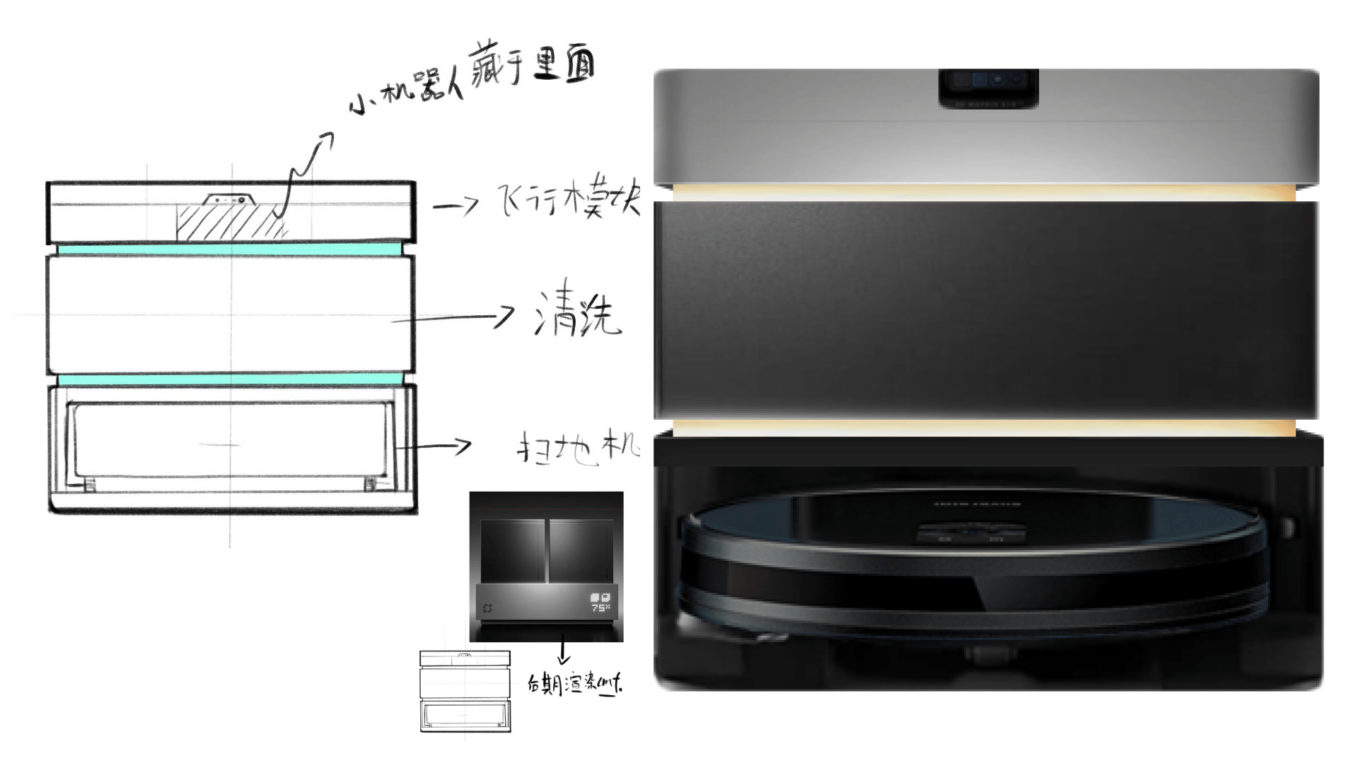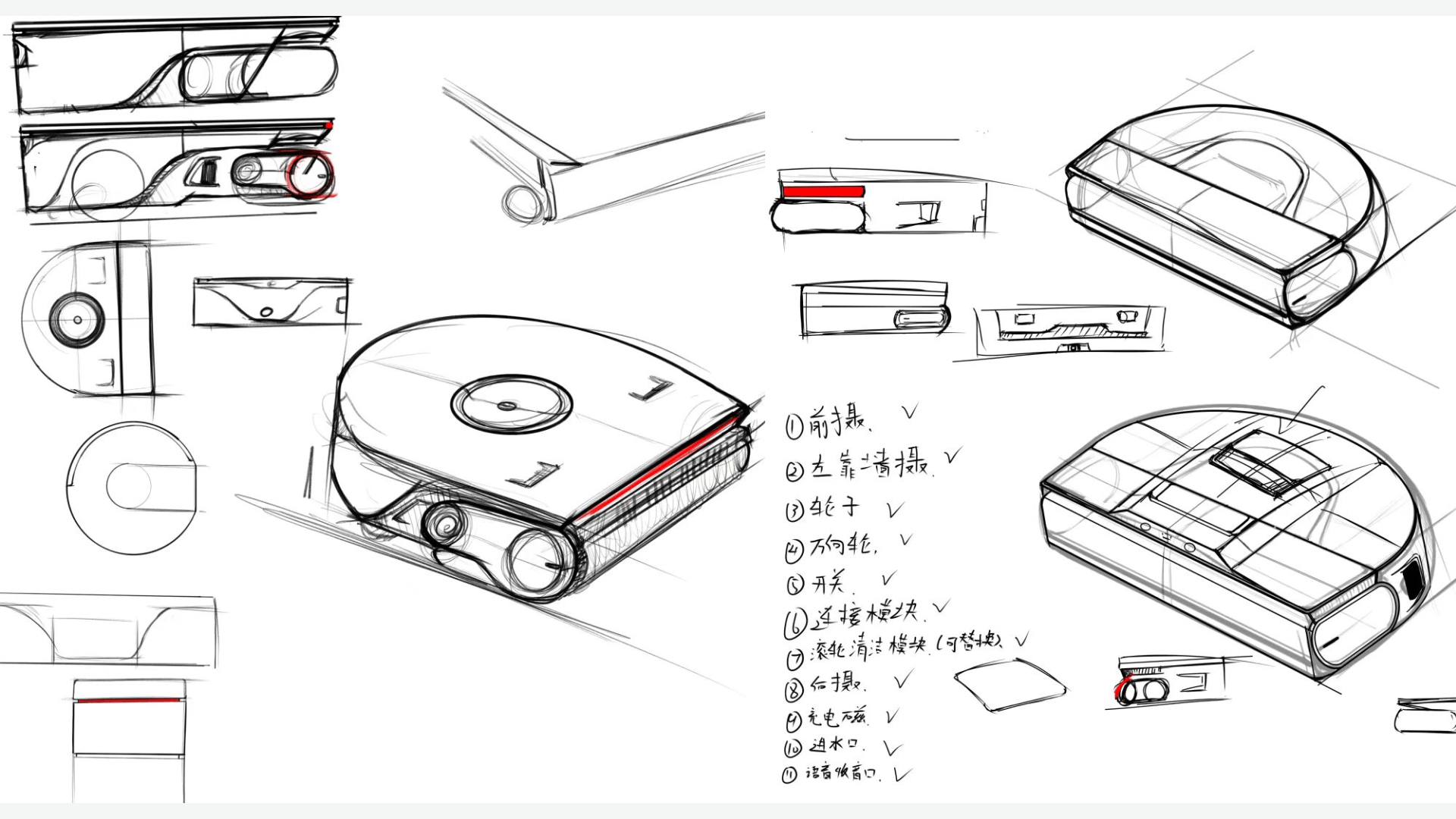 其后与石头科技开始进行合作,初步交谈,认识了孟老师,让我对产品设计有了更进一步的思考。我在考研时,看书,做题,总会出现设计大师总结出的设计原则与理论,但脱离实践的理论永远是虚假的,这并不是说理论是假的,而是我们只学习理论而不运用理论,不去实践中验证理论,那永远是纸上谈兵,是别人的理论,而我们只是学会了背书。在这短短几个月我在实践中去学习”少即是多”(Less is more),少即是多并非简单的减法,而是经过深思熟虑的精简,是化繁为简的艺术结晶。它要求设计师在设计过程中仔细斟酌每个元素的必要性和价值,剔除那些多余或冗杂的成分,最终呈现出简洁明快、直击本质的设计作品。