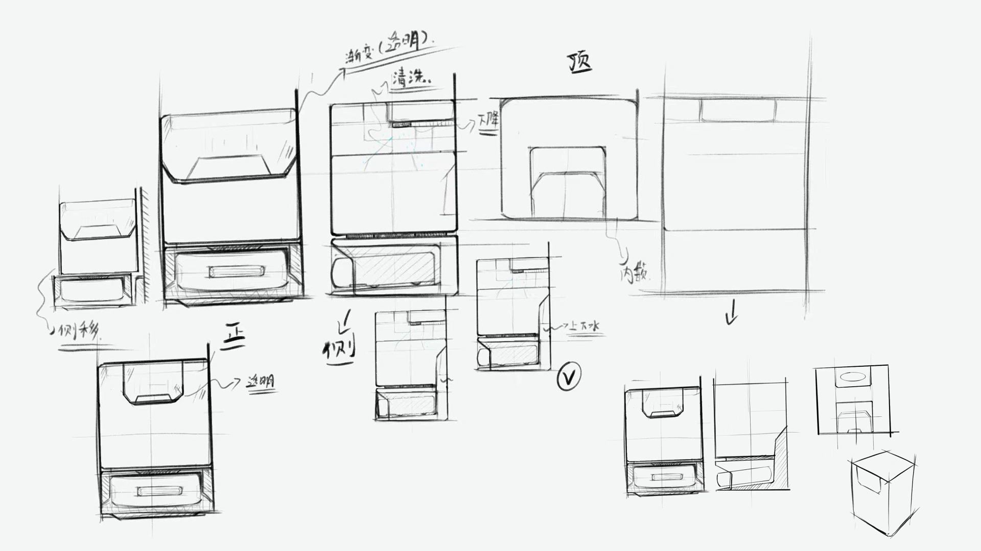 在不断的做减法之后,最终选定将方向聚焦于家庭空间的清洁。在我以为我想好方向的时候,才发现自己仍然还是“太嫩了”。任然是老问题,清洁家庭空间的什么,想的太大了。这时我才知道,一个产品的出现并不是那么简单,有什么问题我就设计一个产品去解决。而是经过了十分多的思考调研,反复的定焦,扩大,定焦之后,聚焦于一个十分痛的一个点,一个场景,去解决。现在的产品定位十分的精细,而不是以前的,一个产品干十个活的时代。于是继续思考,思考,思考。
