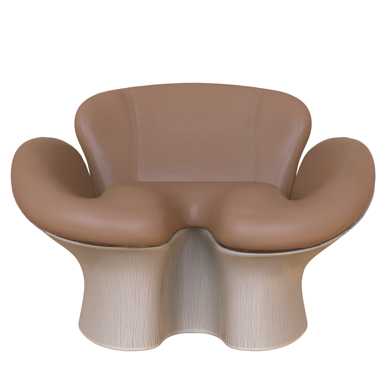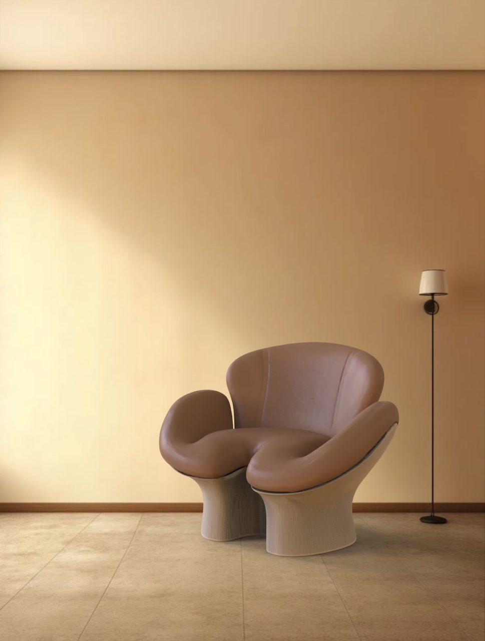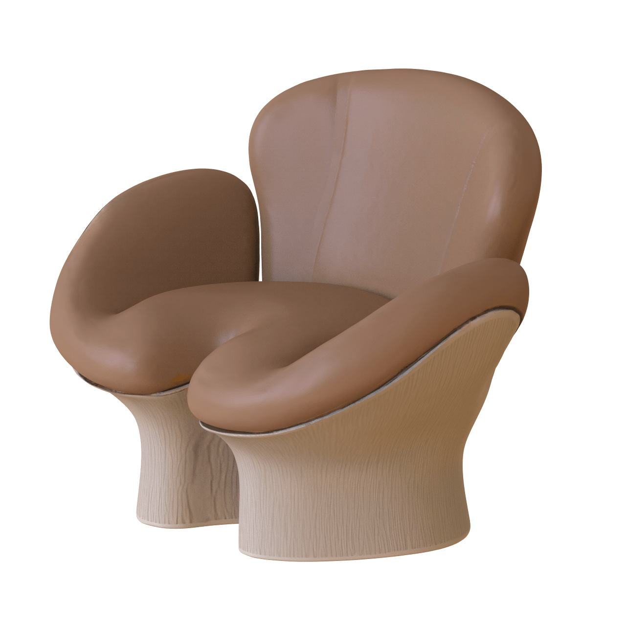 以平菇为原型,将最大最柔软的一面作为与人的接触面,中空设计可作为散热作用,就像平菇的凉感,给予舒适与散热的效果,久坐不湿热