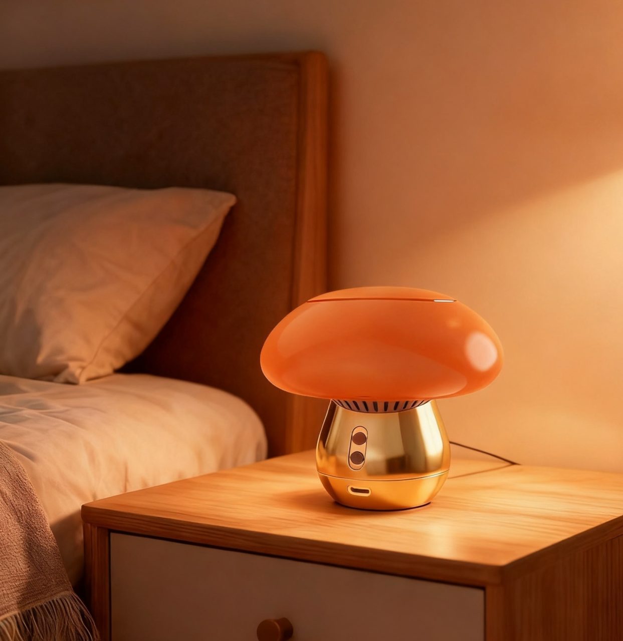 模仿蘑菇散发孢子,能根据不同时段释放对应气味:饭点时飘出模拟饭菜的香气,提醒按时用餐;睡前切换为薰衣草助眠香调,营造放松的入睡氛围;学习工作时段则释放柠檬清新气味,帮助提神、提升专注力,用自然的嗅觉信号,悄悄帮独居者把生活节奏拉回正轨。