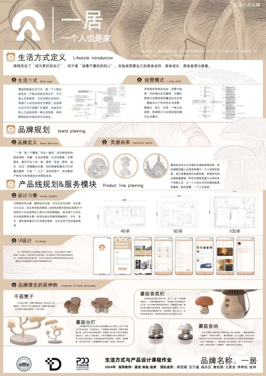 本次生活方式与产品设计课程,我们聚焦“单身独居”这一新兴趋势,围绕其生活痛点与空间需求,提出“一居”生活系统构想。通过政策、社会与人群研究,尝试以空间更新、社群服务与数字平台回应独居者的全周期需求。设计不仅是解决问题,更是为“一个人也是家”提供可能。感谢老师在研究方法与方案推演上的耐心指导,使得我们第一次把“生活方式”真正做成了系统提案,在这轮课受益良多