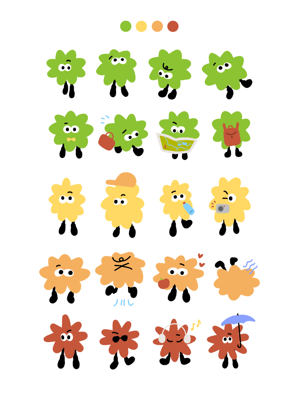 通过对用户群体的探索确立了从(年轻化),差异性,趣味性,三个关键词出发的方向,将app的色相范围确定为:黄绿牛油果色系