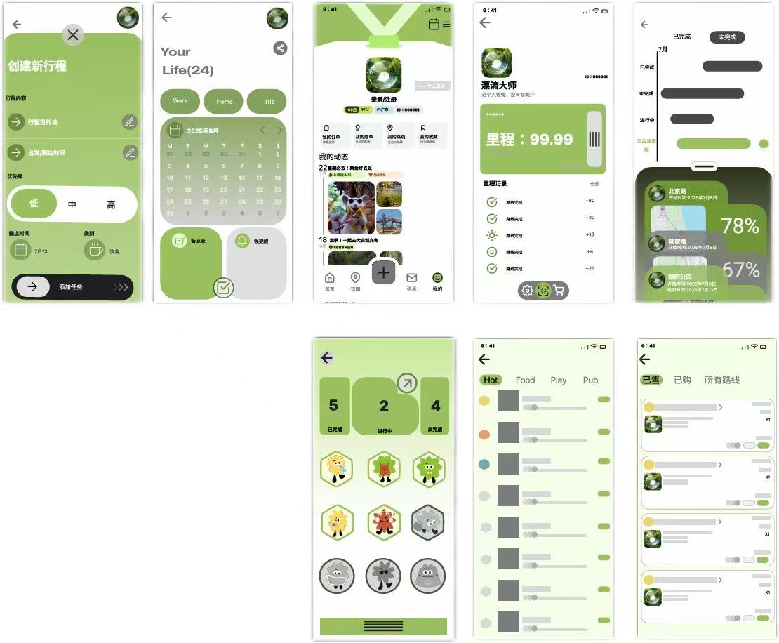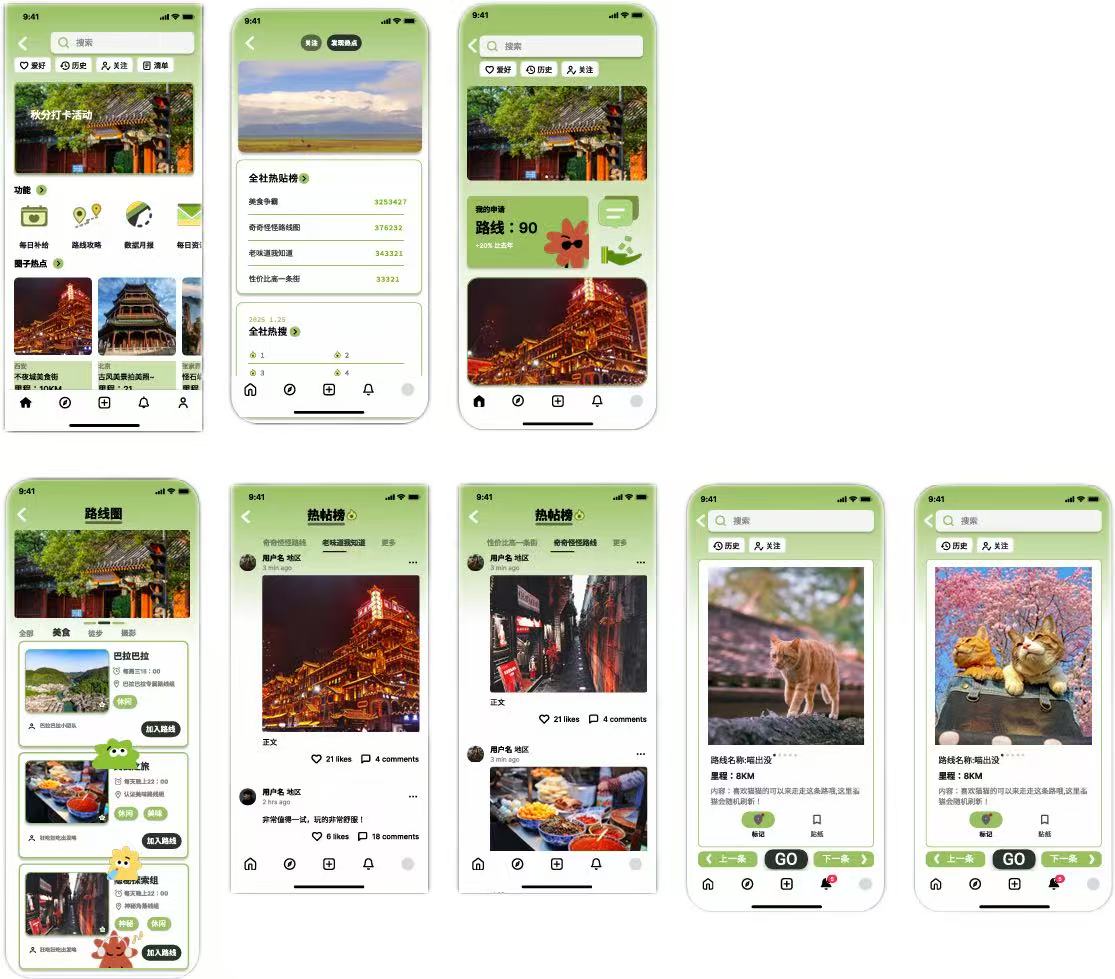 为了促进用户活跃度,我们增加了完成路线后的成就系统与徽章体系。比如(路线成就分类:“路线规划师”:成功创建并分享5条优质路线;“低碳行者”:累计使用公共交通/骑行路线超100公里;“秘境发现者”:挖掘并验证10个小众景点路线。 )